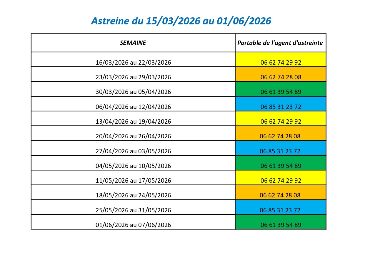 Astreintes services assainissementRetrouvez ci-dessous le planning des astreintes du service assainissement pour les prochains mois.